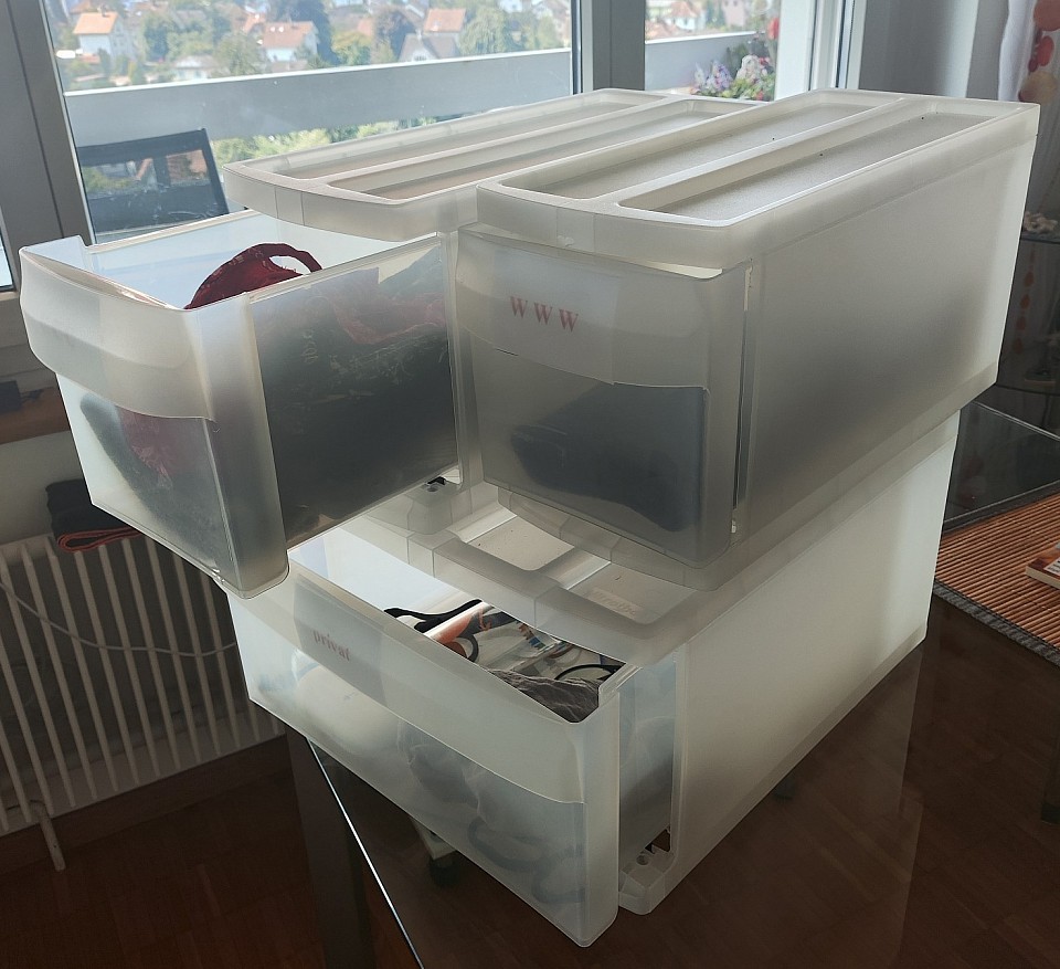 113 / Schubladenelemente, beliebig stapelbar, 39x gross (34x39x20.5), 28x klein (17x39x20.5)
