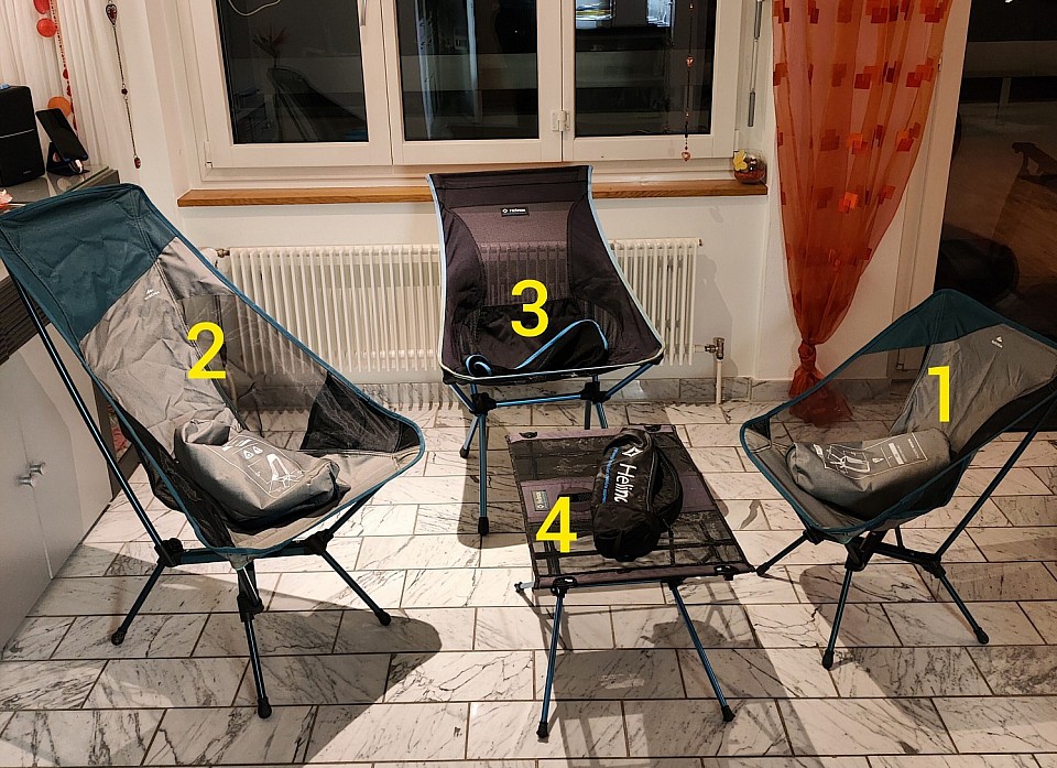 122 / = 3: Sessel Helinox, Sitzhöhe 40 cm, Höhe 82 cm (2 Expl.)