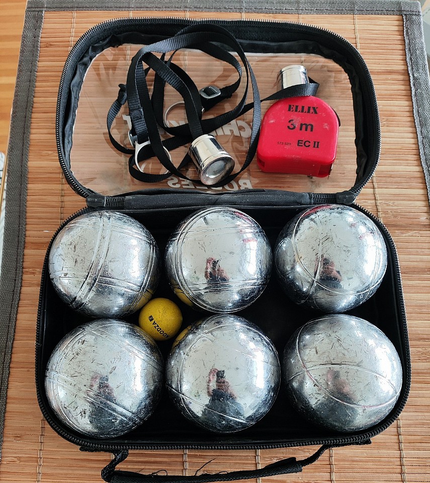 144 / Boules-Set, mit 2 Kugelhebern und Massband